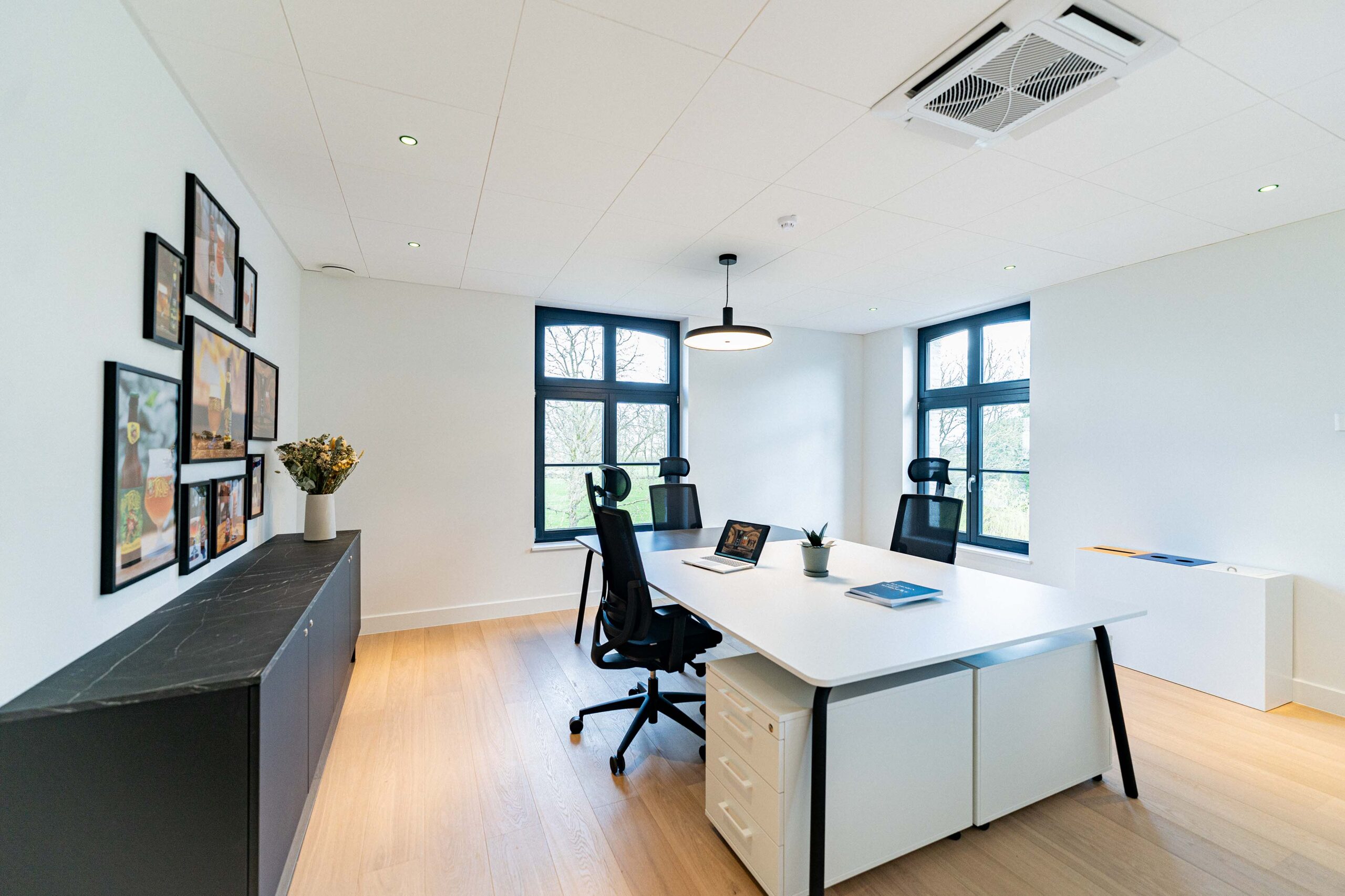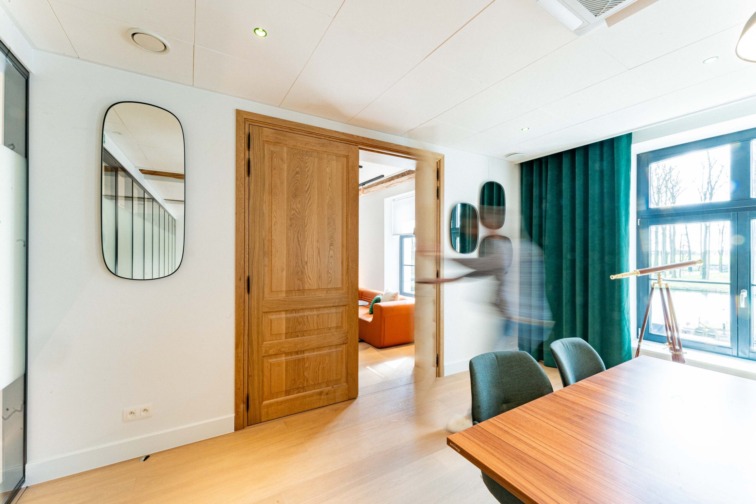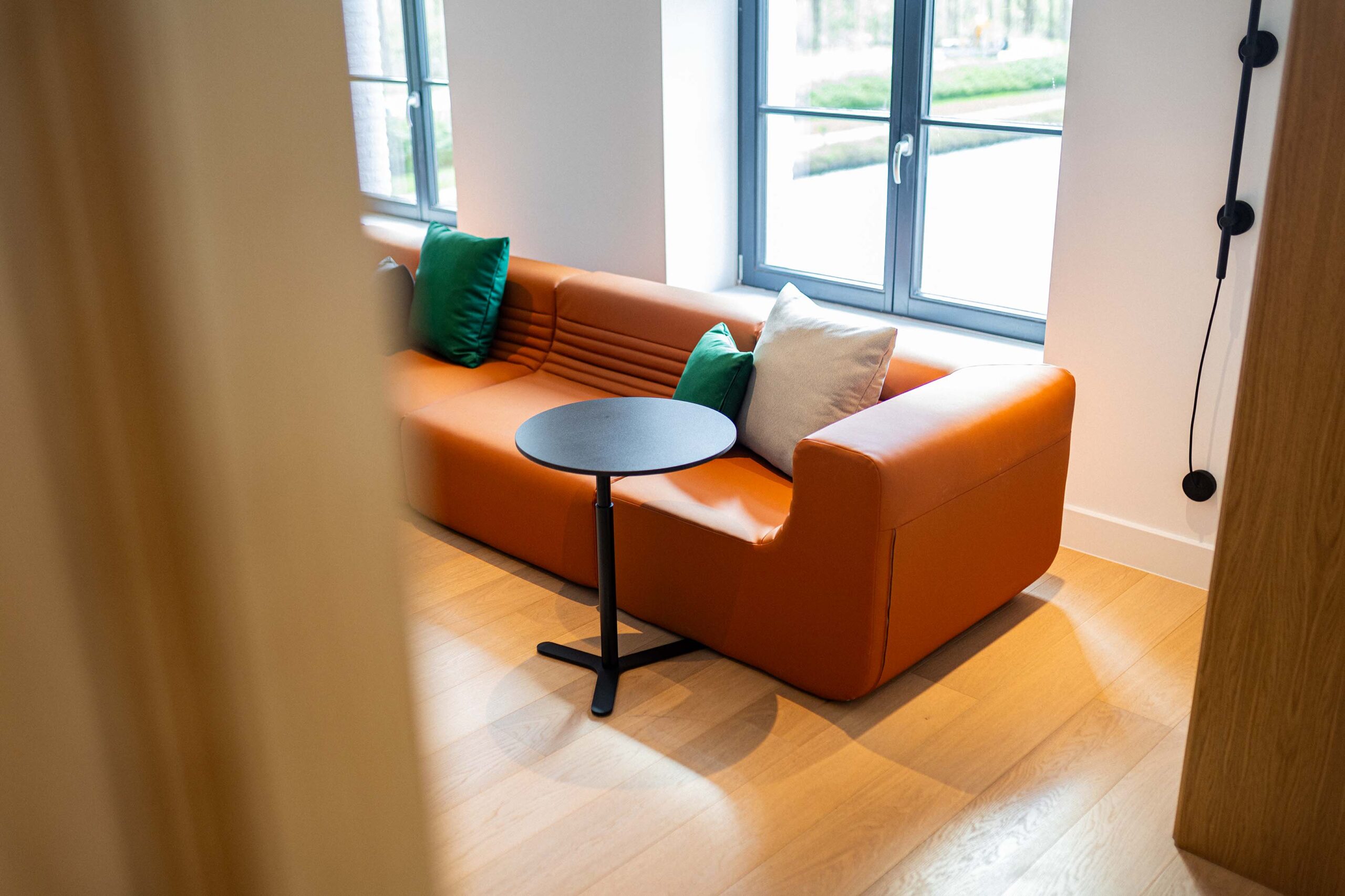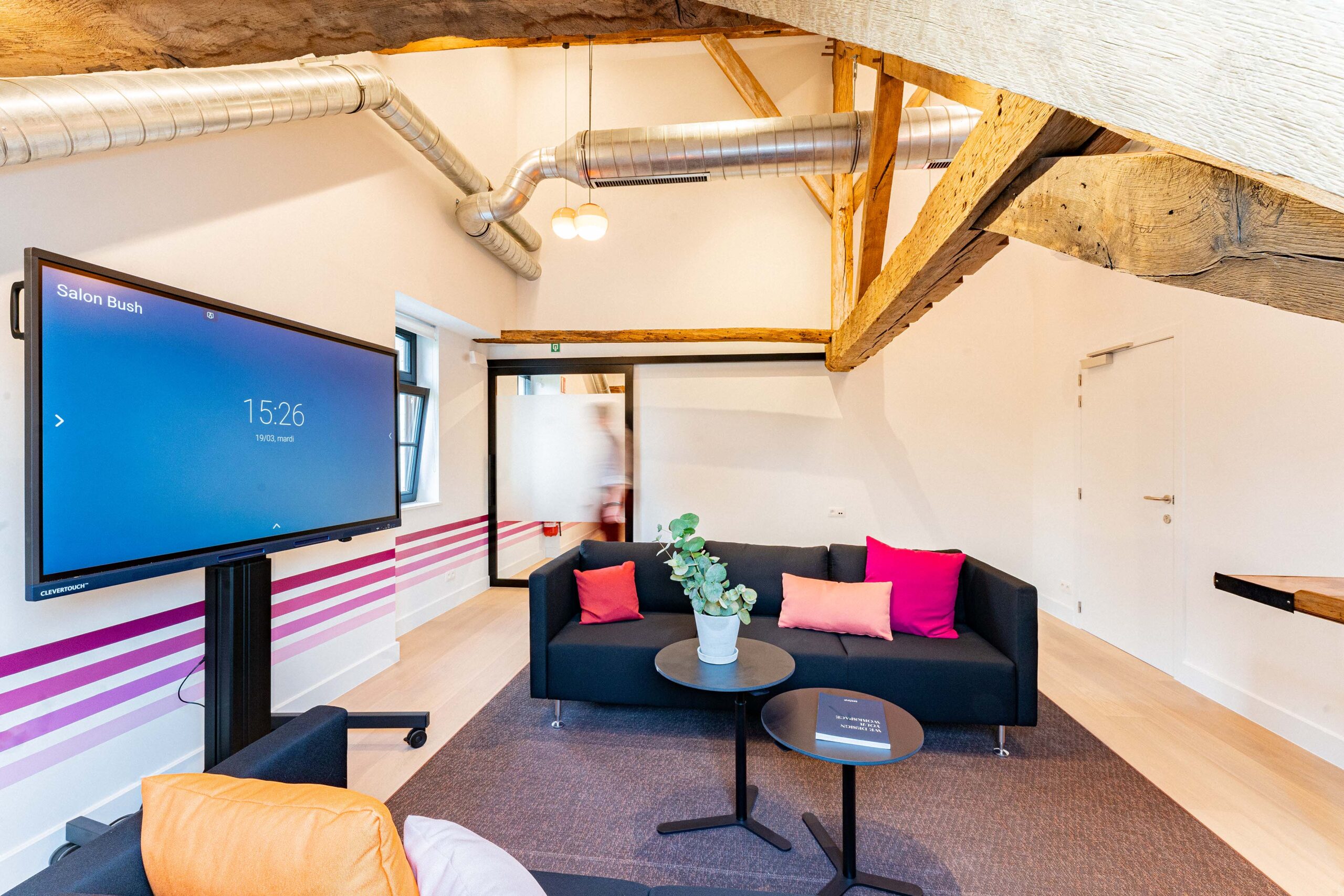 Nous avons réalisé la réhabilitation complète de l’intérieur, tout en respectant notre engagement Design & Build éco-responsable. Premièrement, cela inclut la pose de cloisons pour structurer les espaces. Ensuite, nous avons procédé à la rénovation des sols avec des matériaux acoustiques pour améliorer le confort sonore. De plus, l’installation d’un éclairage LED économe en énergie a permis d’optimiser l’efficacité énergétique. Par ailleurs, nous avons soigneusement choisi du mobilier confortable, ergonomique et durable. En somme, ce projet illustre parfaitement notre capacité à créer des espaces modulables, où tradition et modernité coexistent harmonieusement.