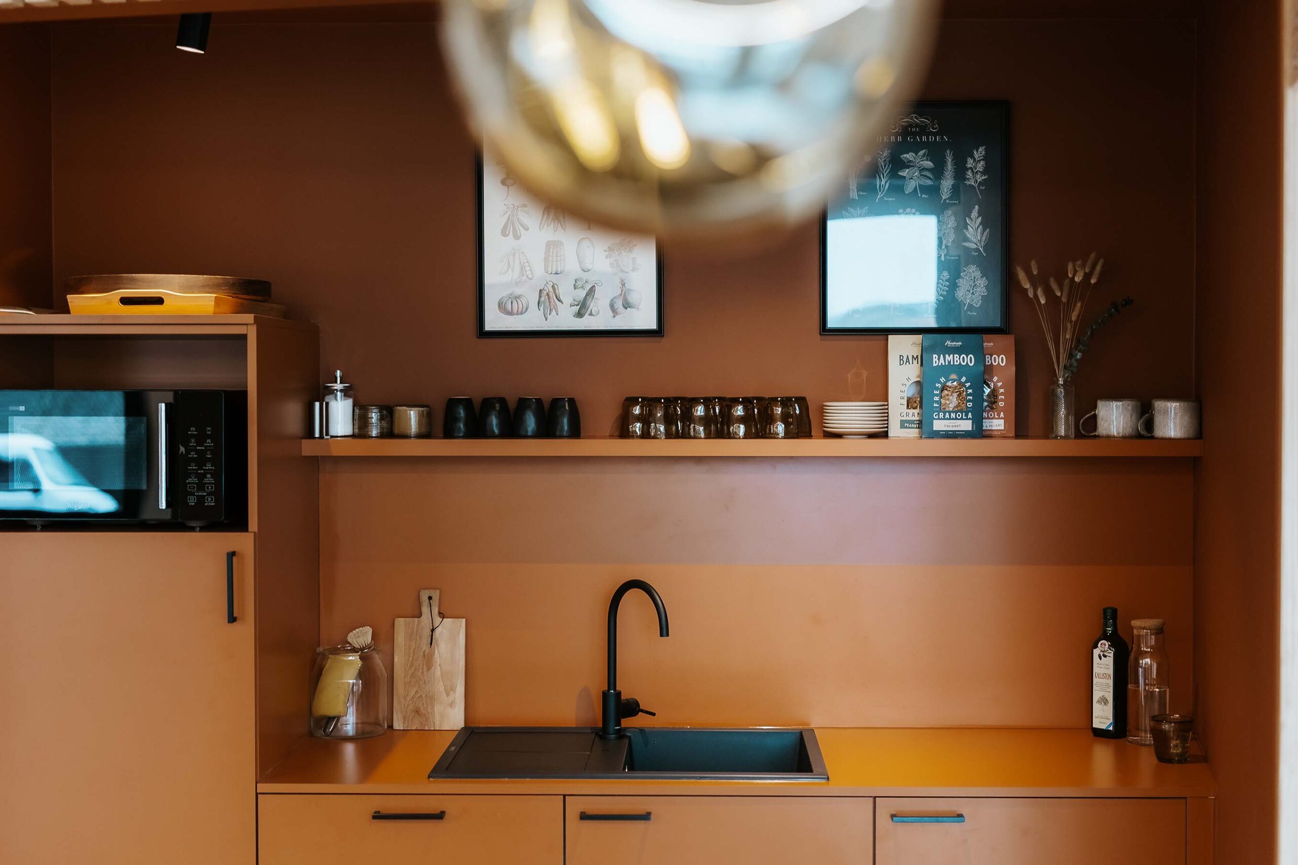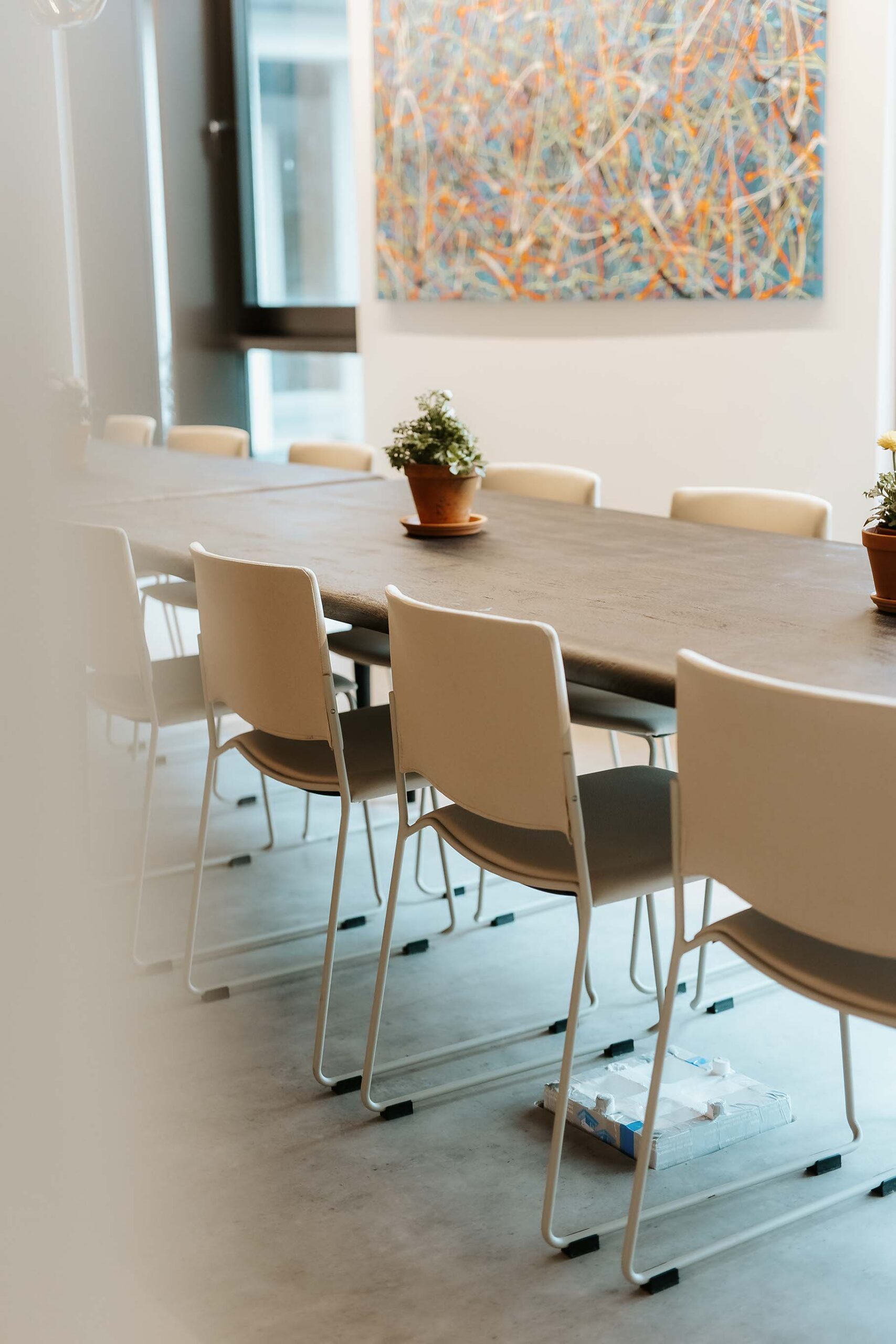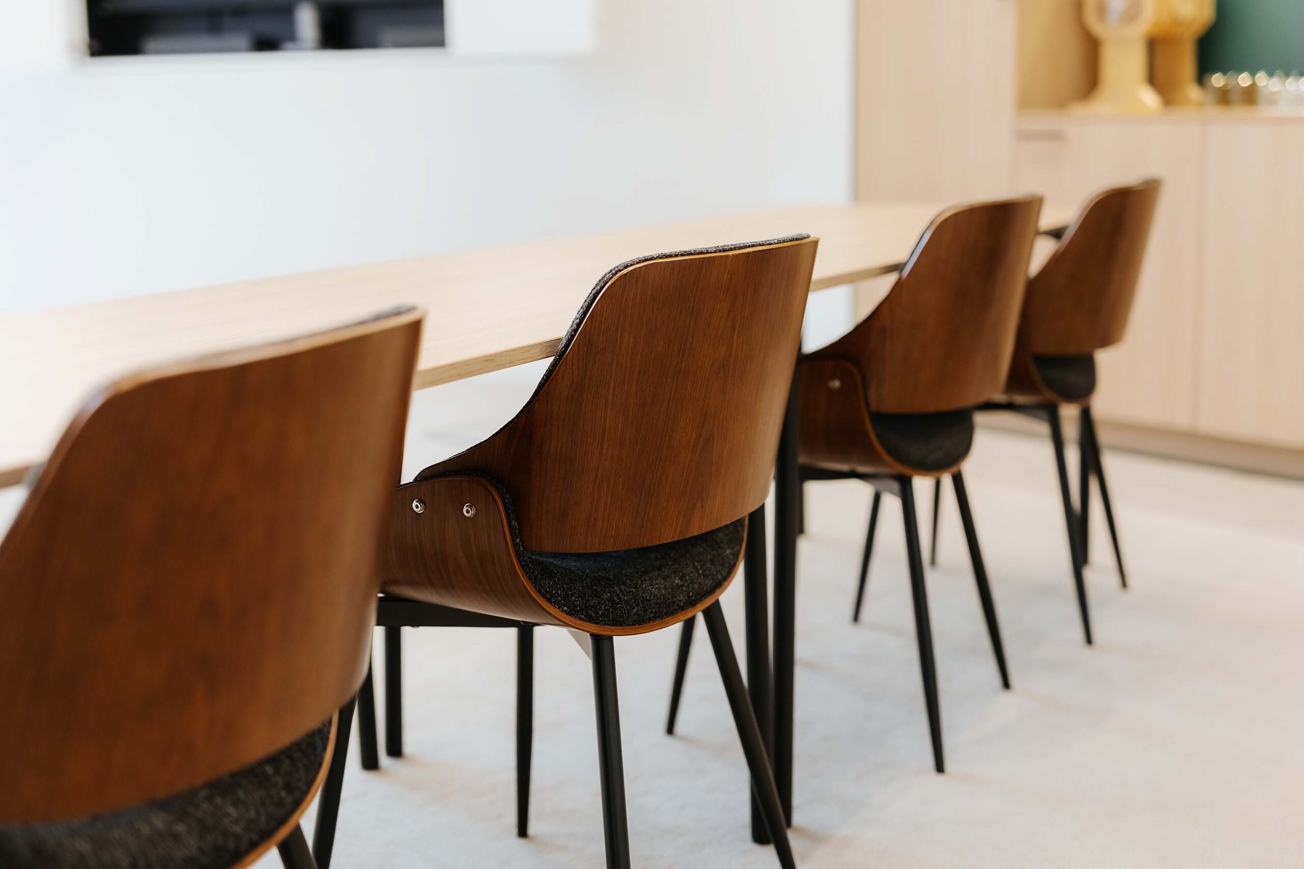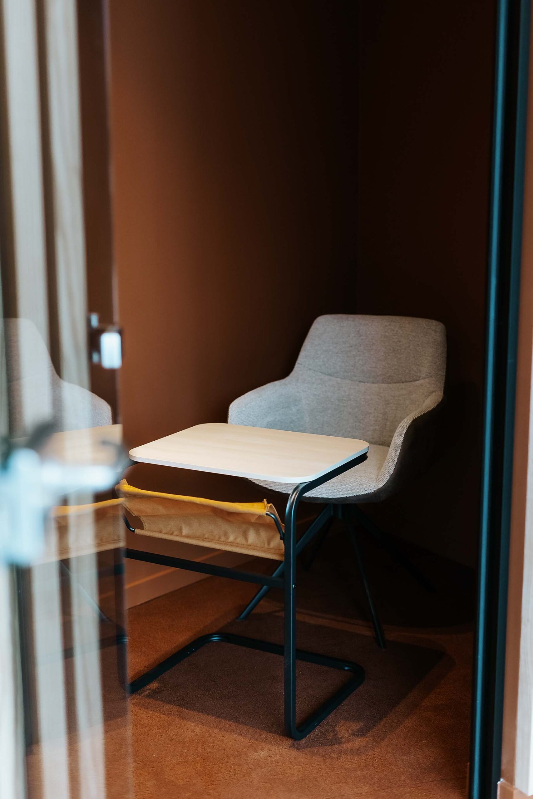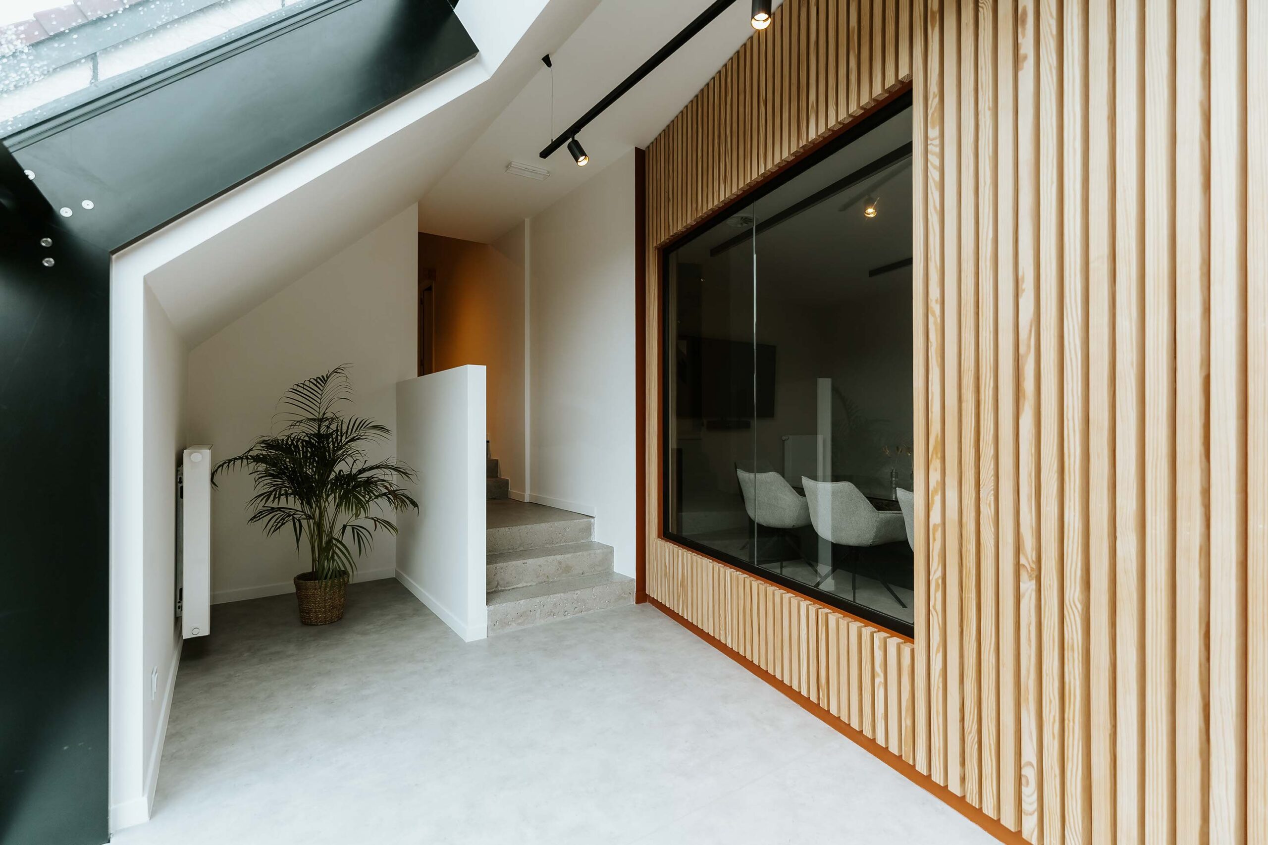 Un des aspects centraux de ce projet est la création de trois salles de réunion, chacune inspirée par la nature. Chaque salle représente une étape de la croissance d’un arbre. La Salle Racines est dédiée au brainstorming et à la naissance des idées. L’aménagement stimule la créativité et favorise l’échange. La Salle Tronc symbolise la stabilité. Son élément phare est une table en bois sur mesure, faite à partir d’un tronc d’arbre choisi par le client. Enfin, la Salle Houppier offre une vue panoramique, idéale pour les séminaires. Ces salles s’inscrivent dans une logique de conception de bureaux flexibles, permettant de moduler leur utilisation selon les besoins.