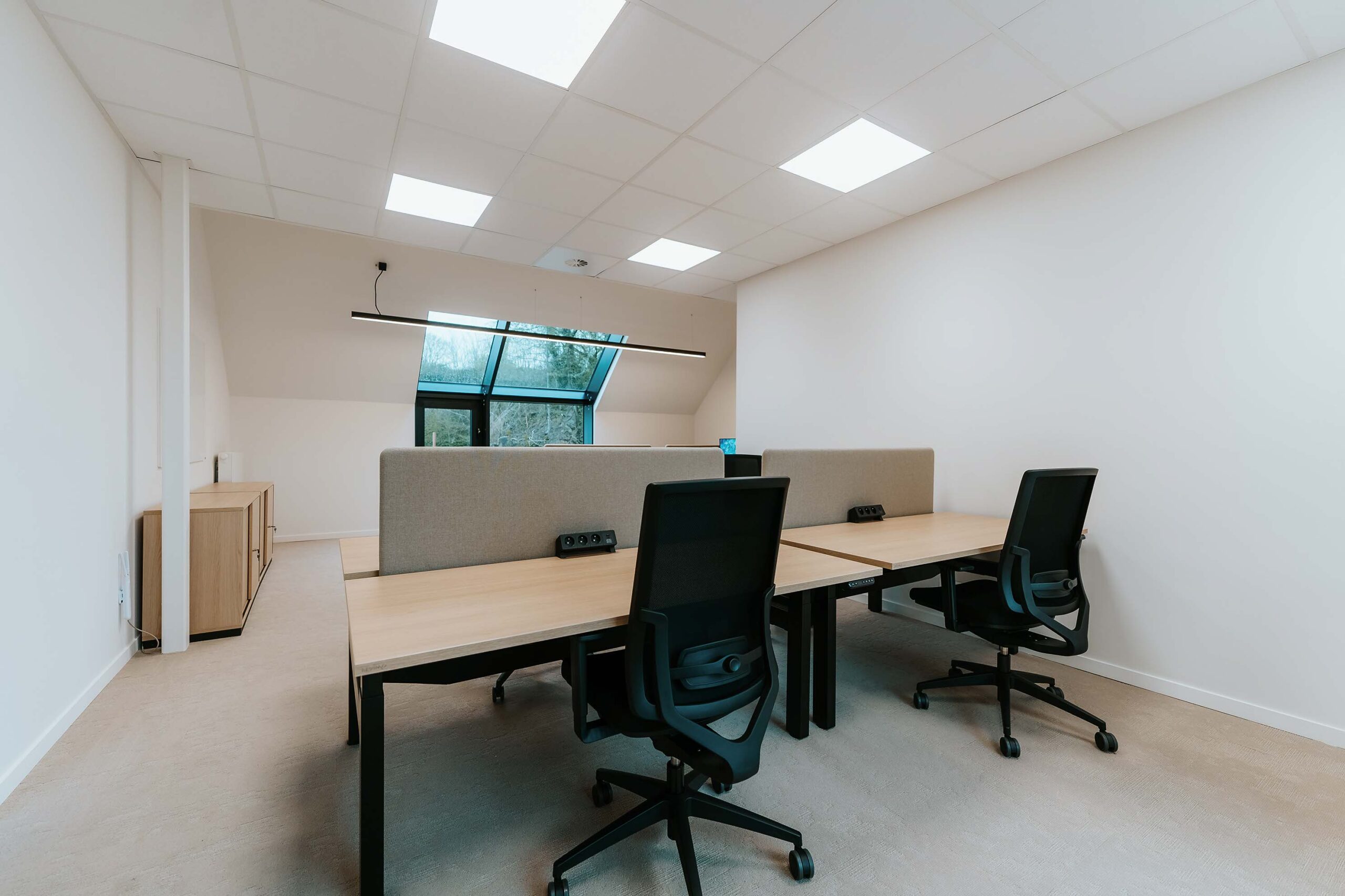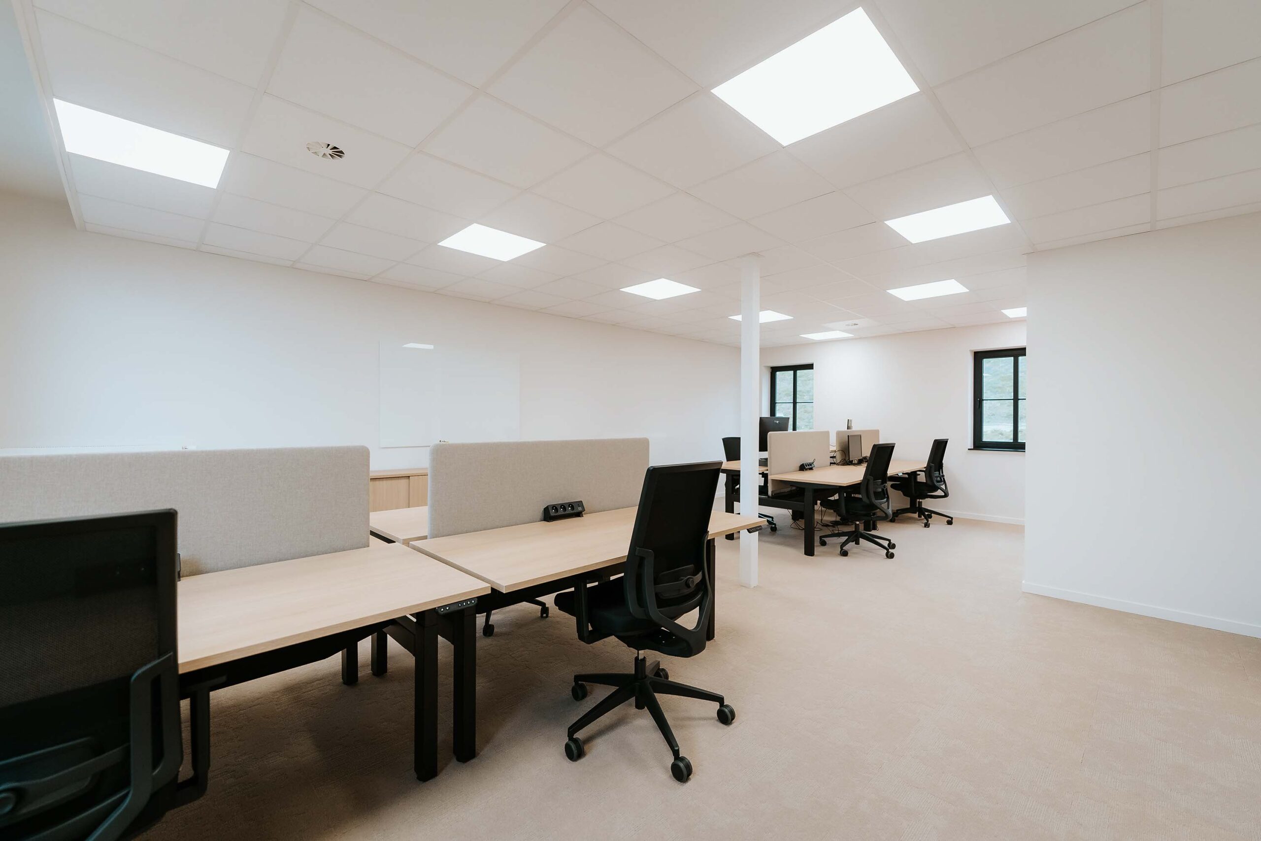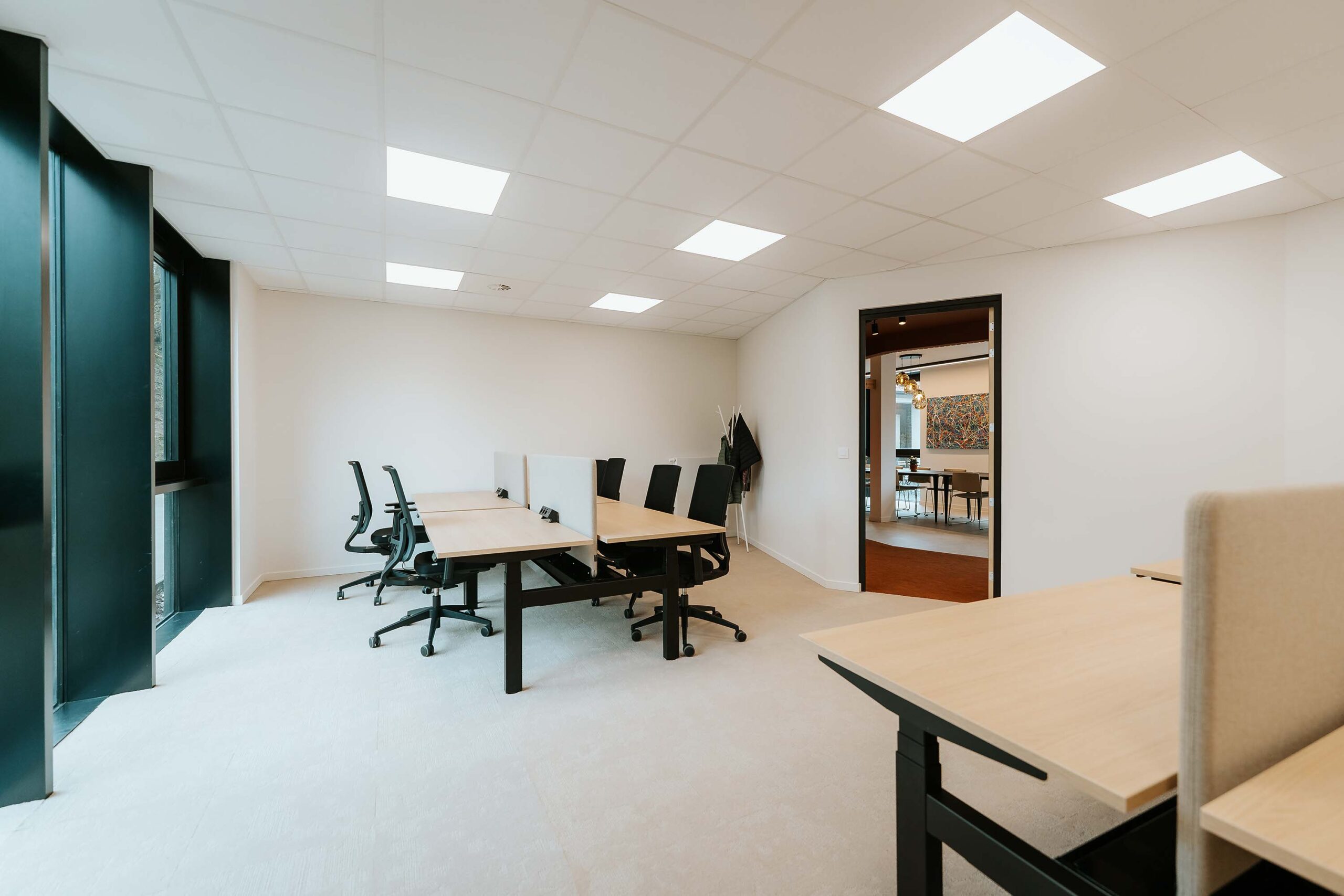 Nous avons réalisé l’intégralité des travaux, du sol au plafond. Cela inclut la pose de cloisons pour structurer les espaces, la réfection des sols et plafonds pour une isolation acoustique améliorée, et l’installation d’un éclairage optimisé. Le mobilier, soigneusement sélectionné, harmonise confort et ergonomie. Cet aménagement illustre notre engagement à fournir des espaces modulables qui soutiennent la créativité tout en assurant une fonctionnalité maximale.
