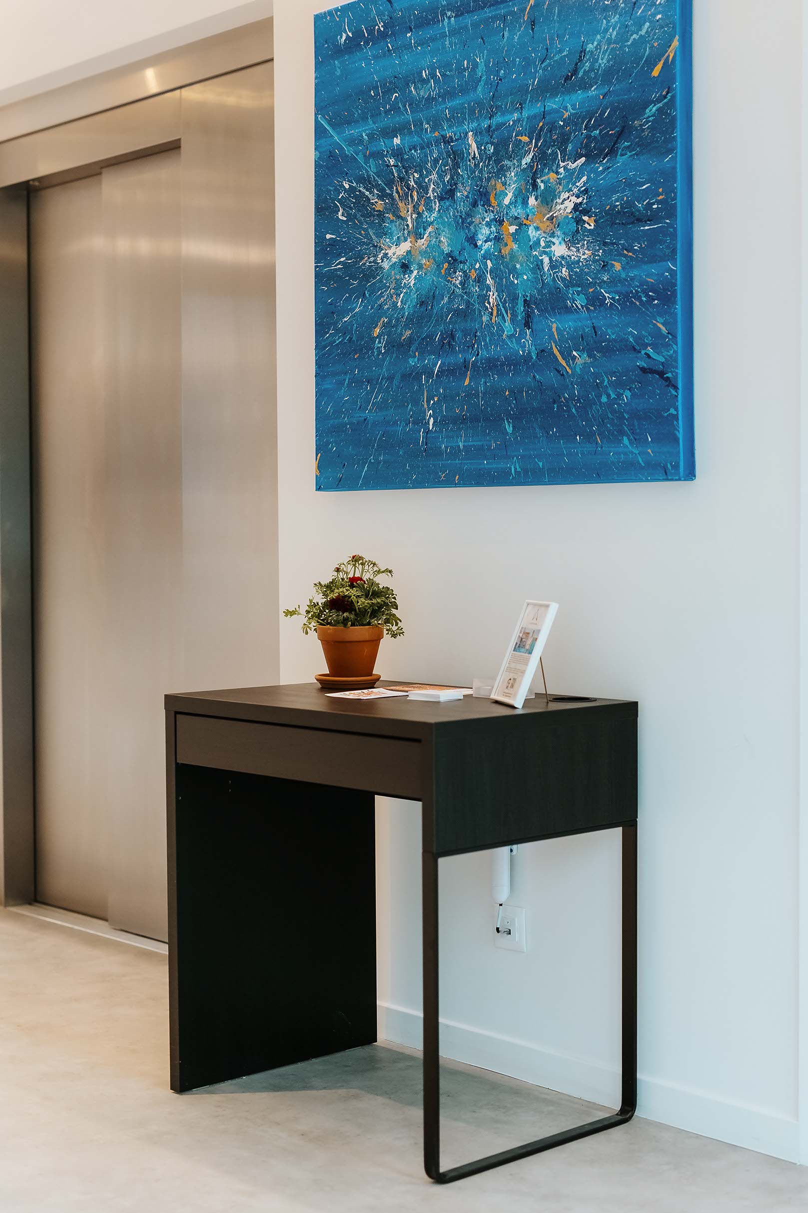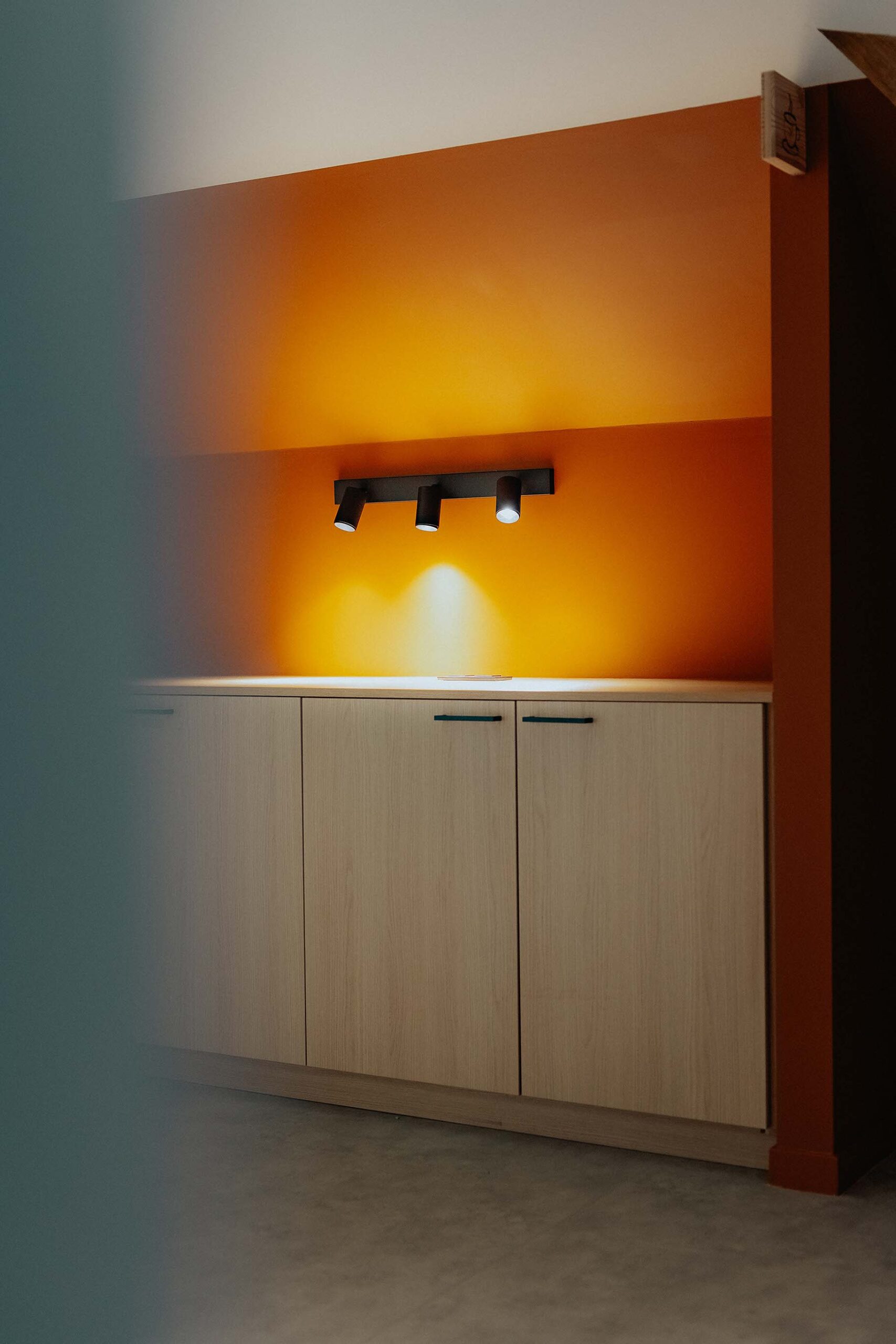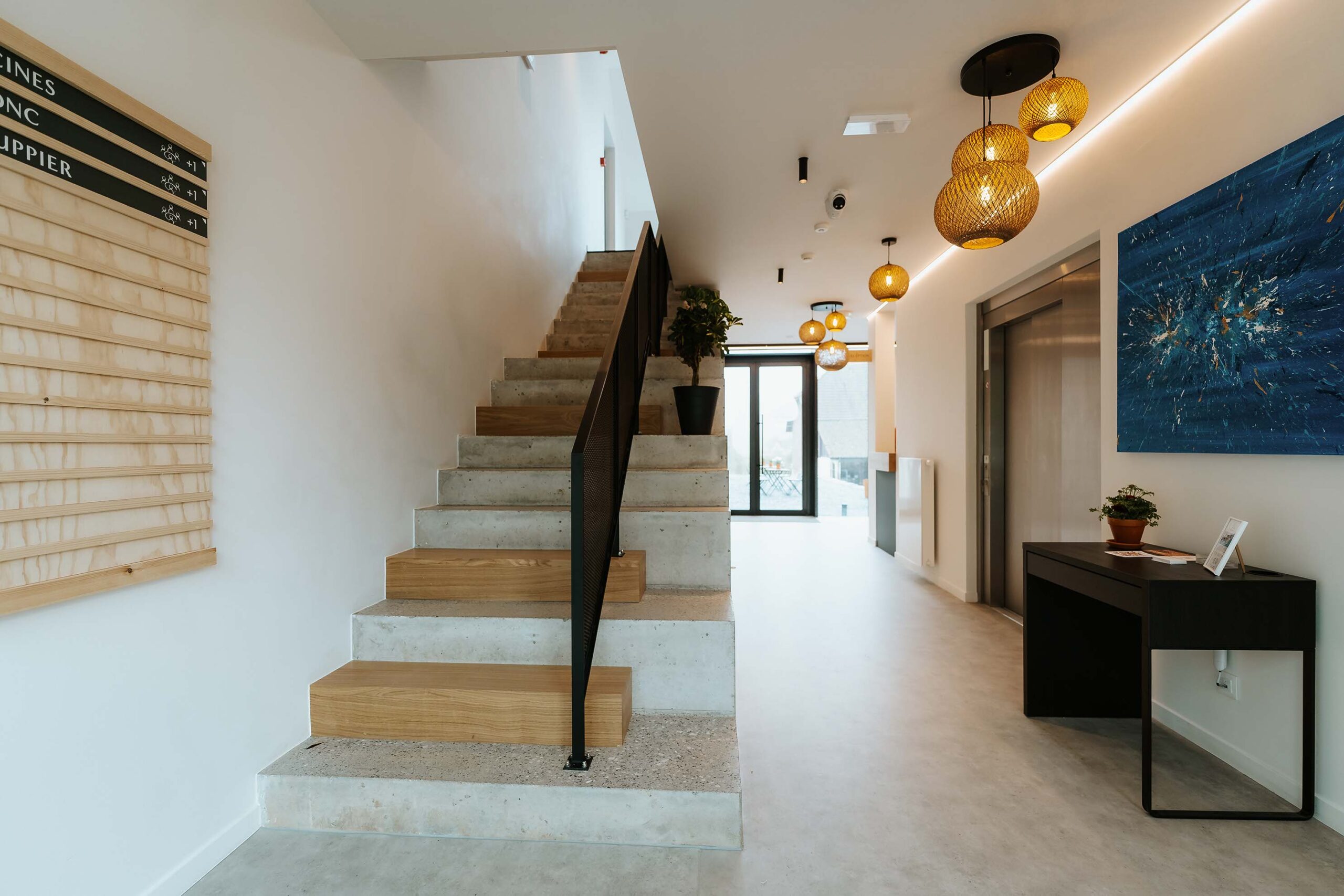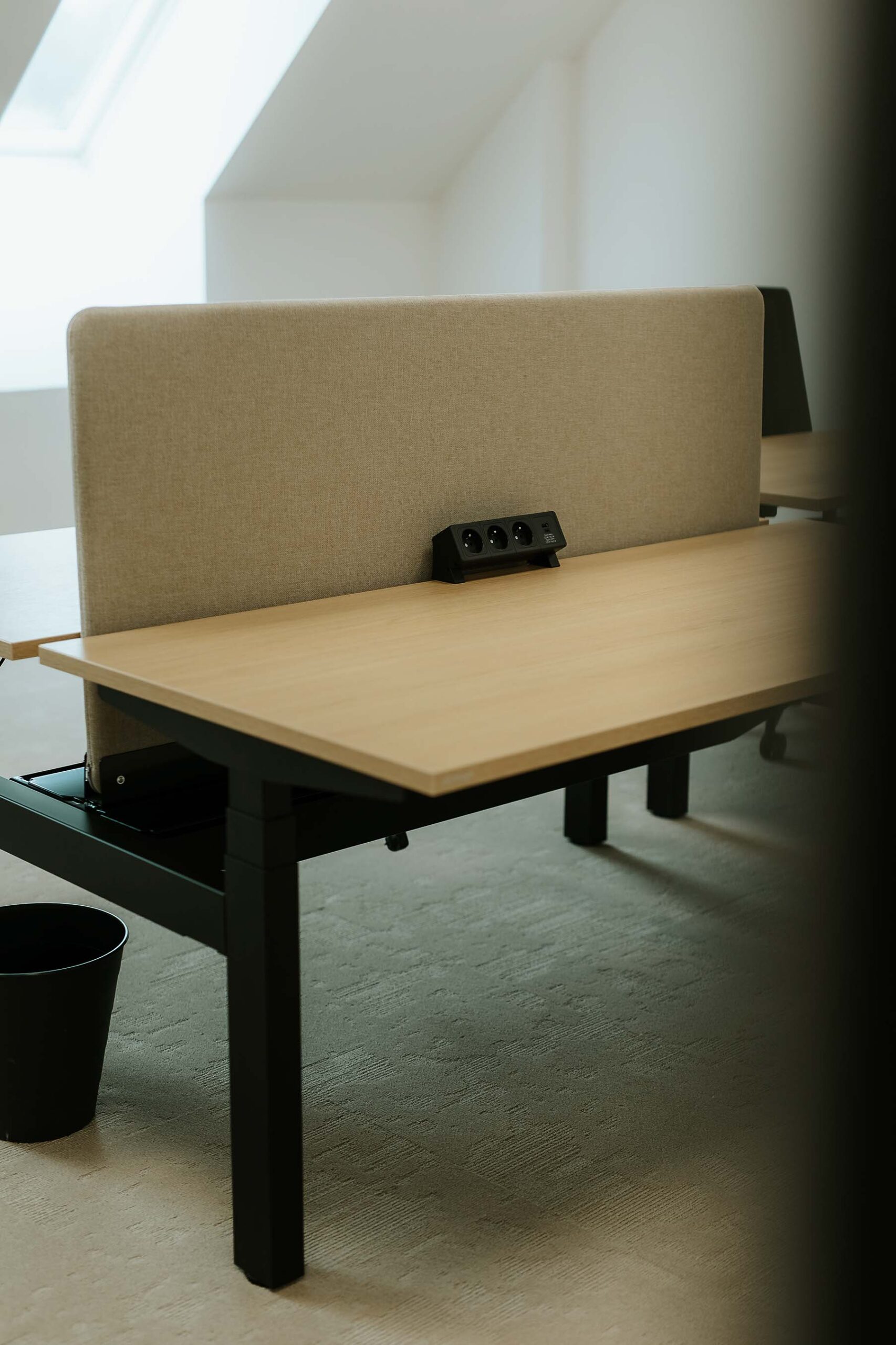 Nous avons réalisé l’intégralité des travaux, du sol au plafond. Cela inclut la pose de cloisons pour structurer les espaces, la réfection des sols et plafonds pour une isolation acoustique améliorée, et l’installation d’un éclairage optimisé. Le mobilier, soigneusement sélectionné, harmonise confort et ergonomie. Cet aménagement illustre notre engagement à fournir des espaces modulables qui soutiennent la créativité tout en assurant une fonctionnalité maximale.