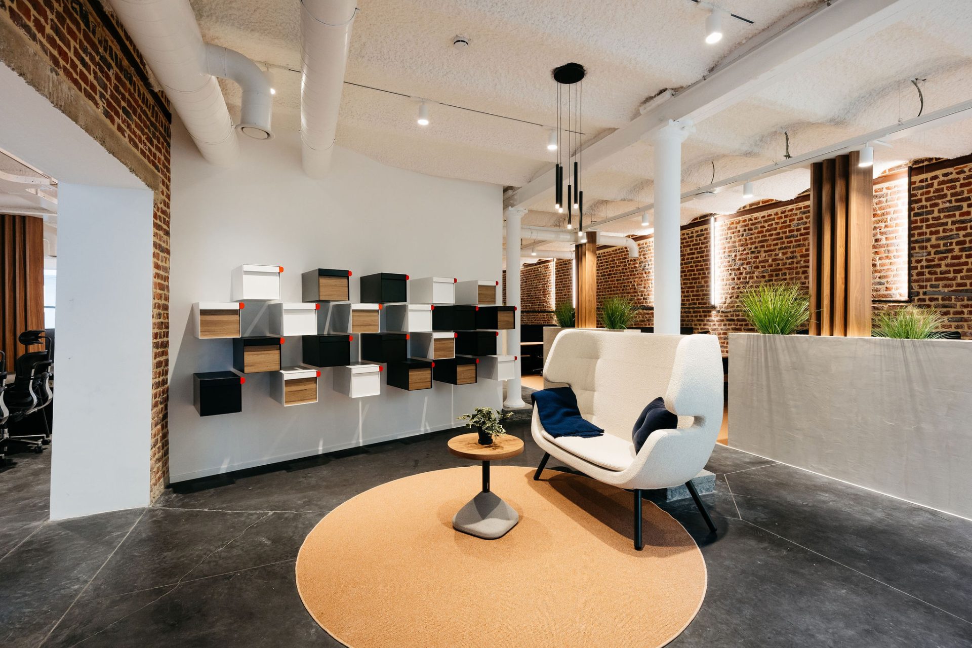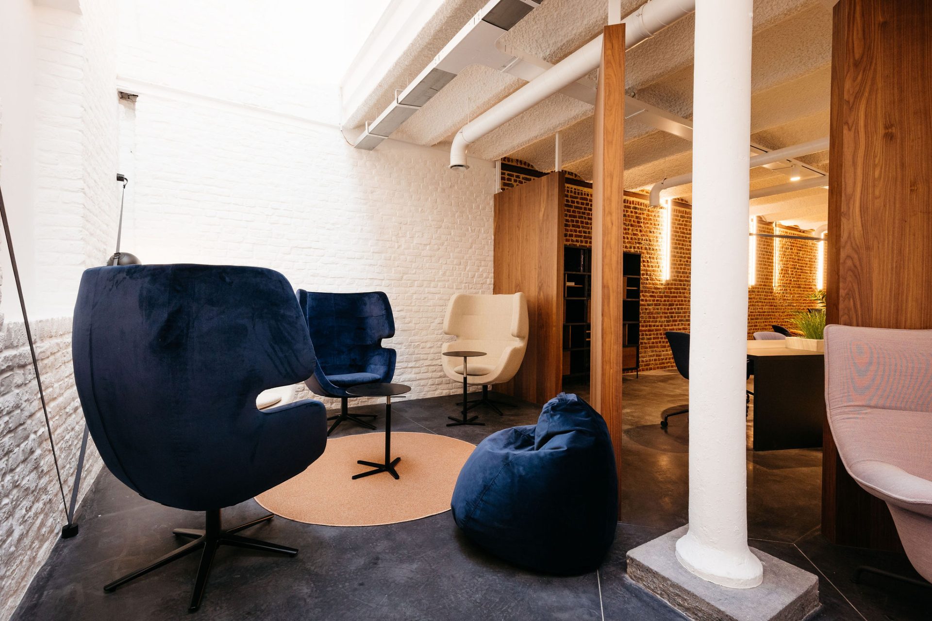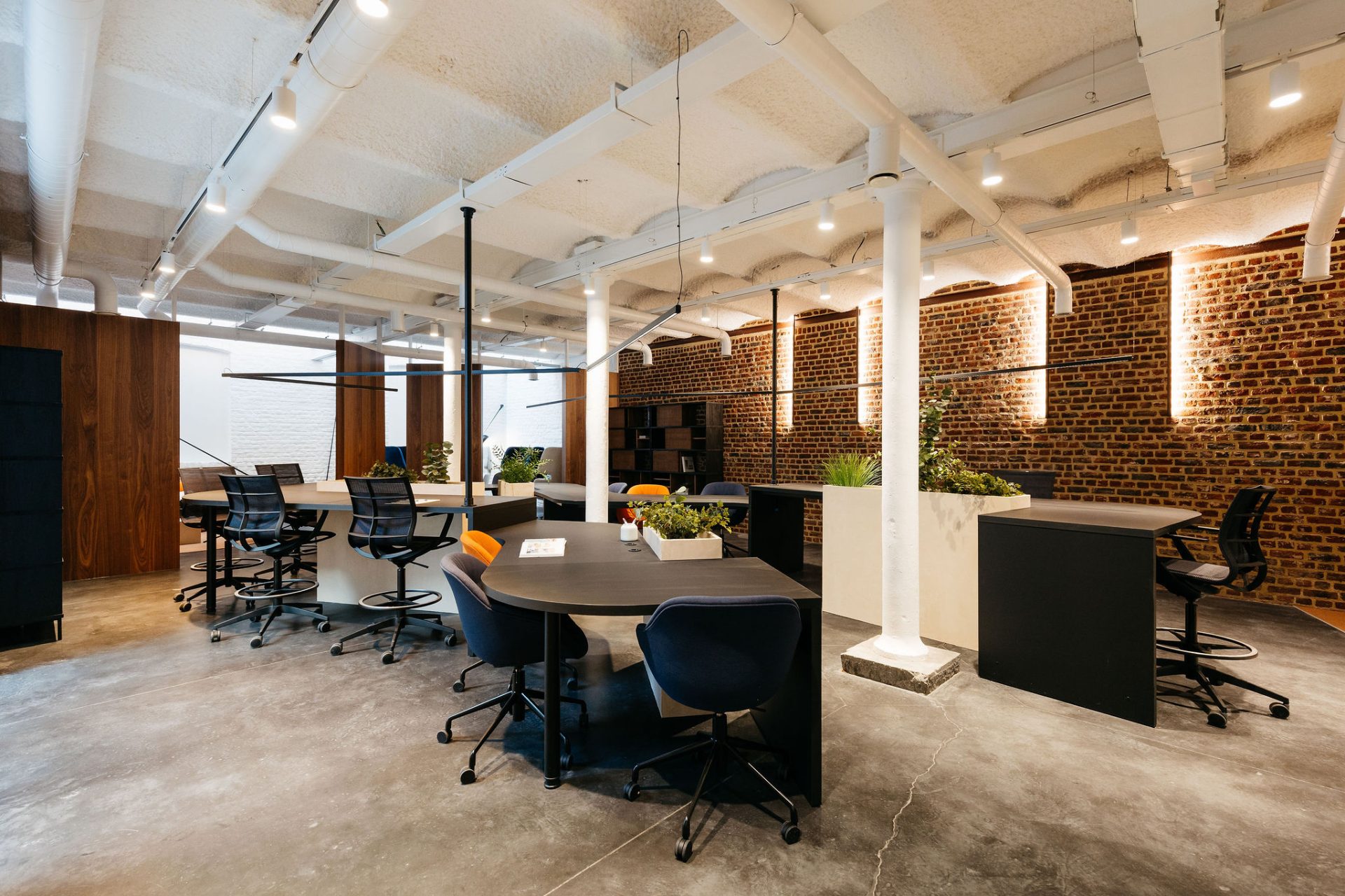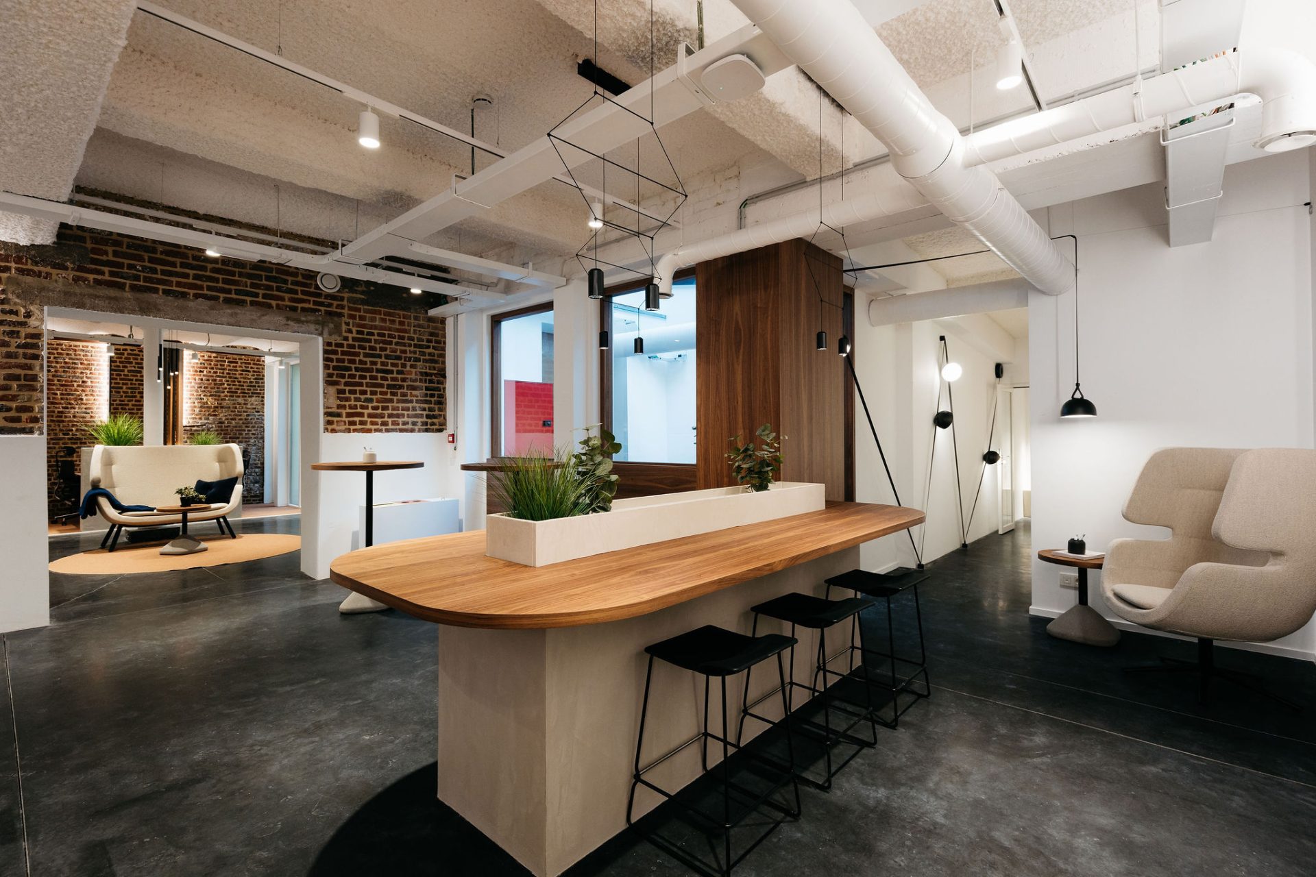 Avec sa créativité habituelle, notre équipe a conservé l’essence brute de l’industriel tout en imprégnant chaque recoin de caractère. La luminosité, primordiale malgré la nature souterraine, a été optimisée pour favoriser la productivité et créer des ambiances uniques.